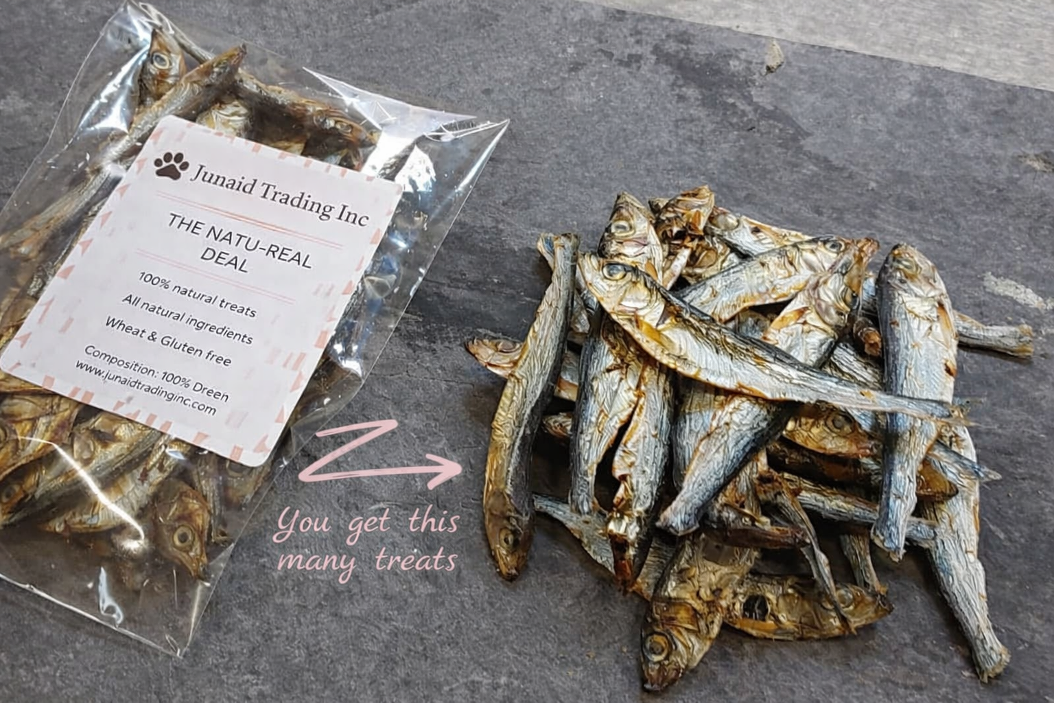 Treat your dog to a delicious, nutritious snack with Dried Fish Treats. These 100% natural, air-dried fish treats are high in protein and contain no artificial colours, flavours, or preservatives. Perfect for rewarding your dog, these treats are also wheat and gluten-free, making them suitable for sensitive dogs. Packed with essential nutrients like vitamins A, E, and D3, as well as minerals such as calcium, magnesium, and phosphorus, these fish treats contribute to healthy bones, a shiny coat, and overall well-being. Ideal as an everyday snack or special reward!