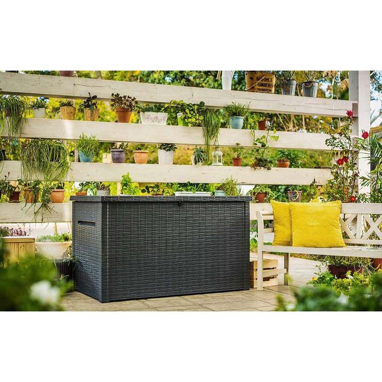 The Keter Java 870 Litre Plastic Storage Box – Grey will help keep your outdoor living space clutter-free and in great shape when you entertain.