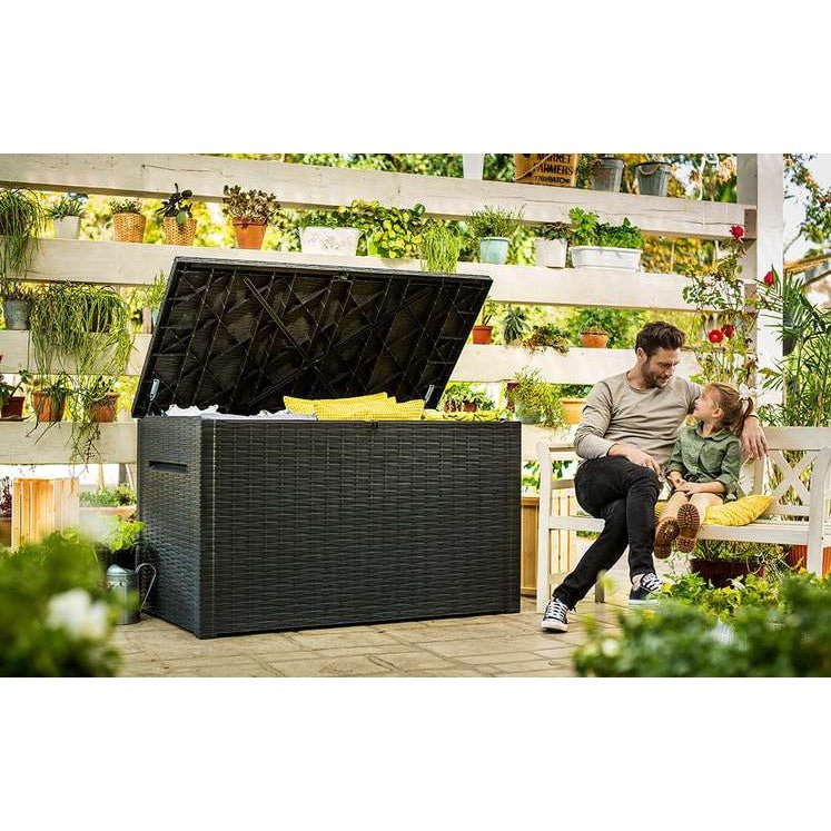 Ideal outdoor XXL storage box for garden tools and equipment, furniture cushions, garden games and accessories